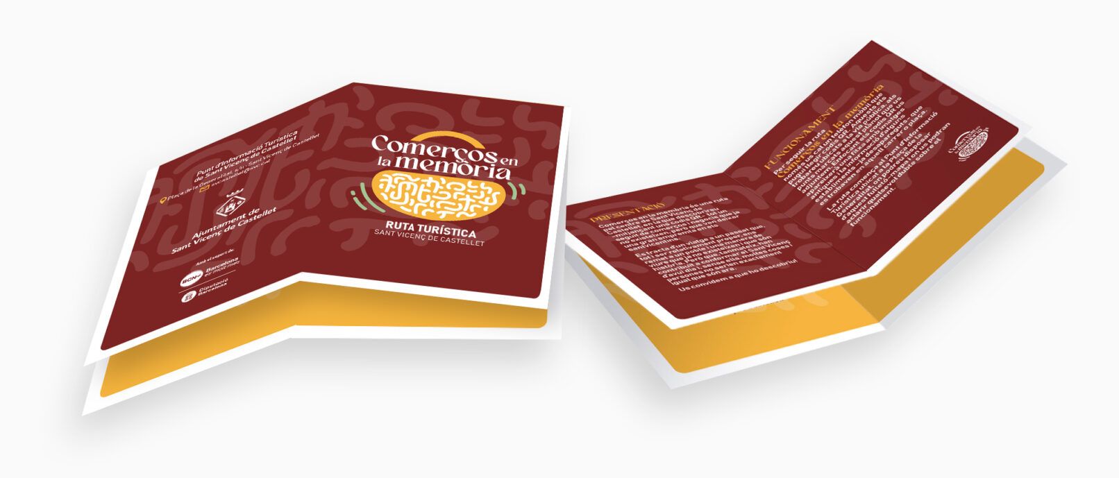 Disseny de la identitat visual, adaptació a fulletó promocional i tanca per al punt de informació turística de Sant Vicenç de Castellet.